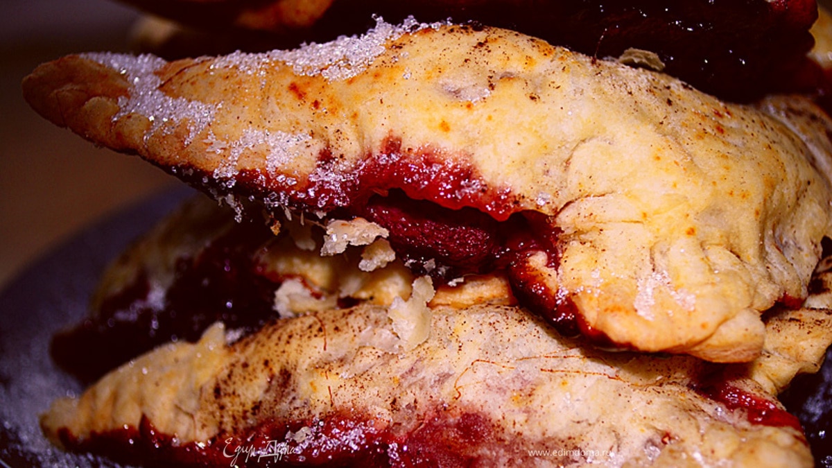 Слоеные пирожки с вишнями и шоколадом