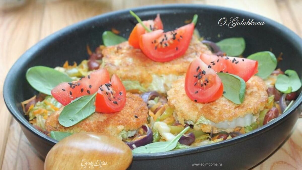 Приготовленную капусту можно подавать в сковороде, а за столом разложить по тарелкам, посыпав зеленью. Украшаем капустные стейки дольками помидора, посыпав ароматным черным кунжутом. Приготовленную капусту можно подавать в сковороде, а за столом разложить по тарелкам, посыпав зеленью. - Шаг 10