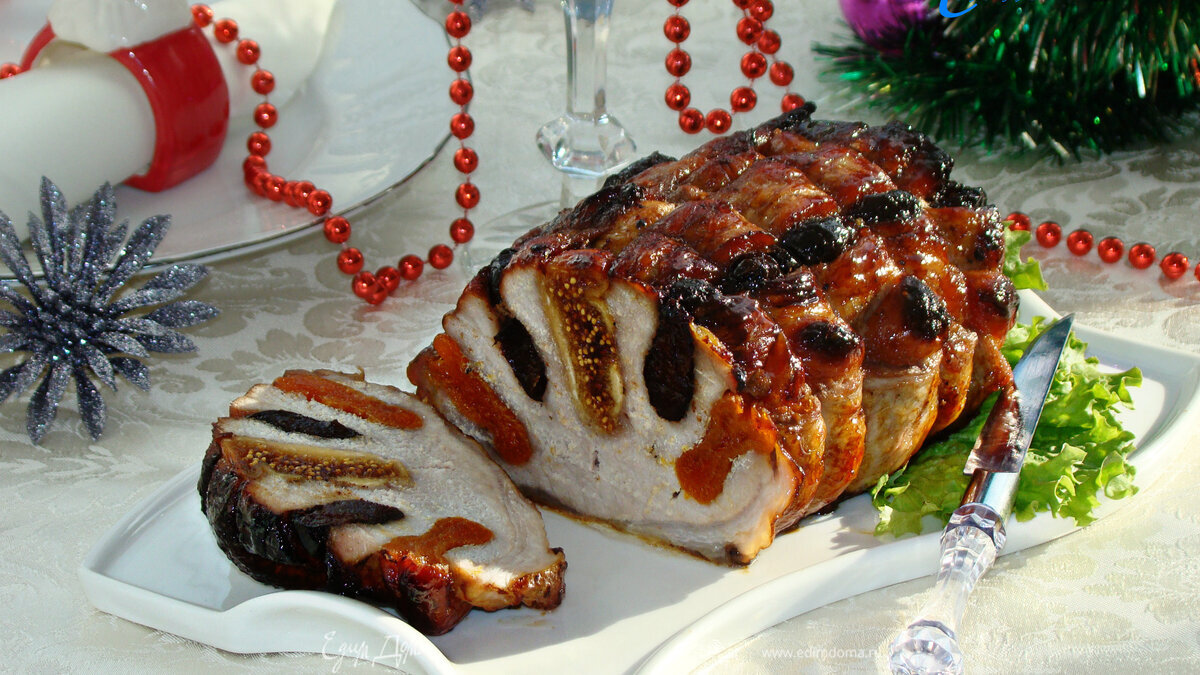 Свинина, запеченная с сухофруктами, под медовой глазурью