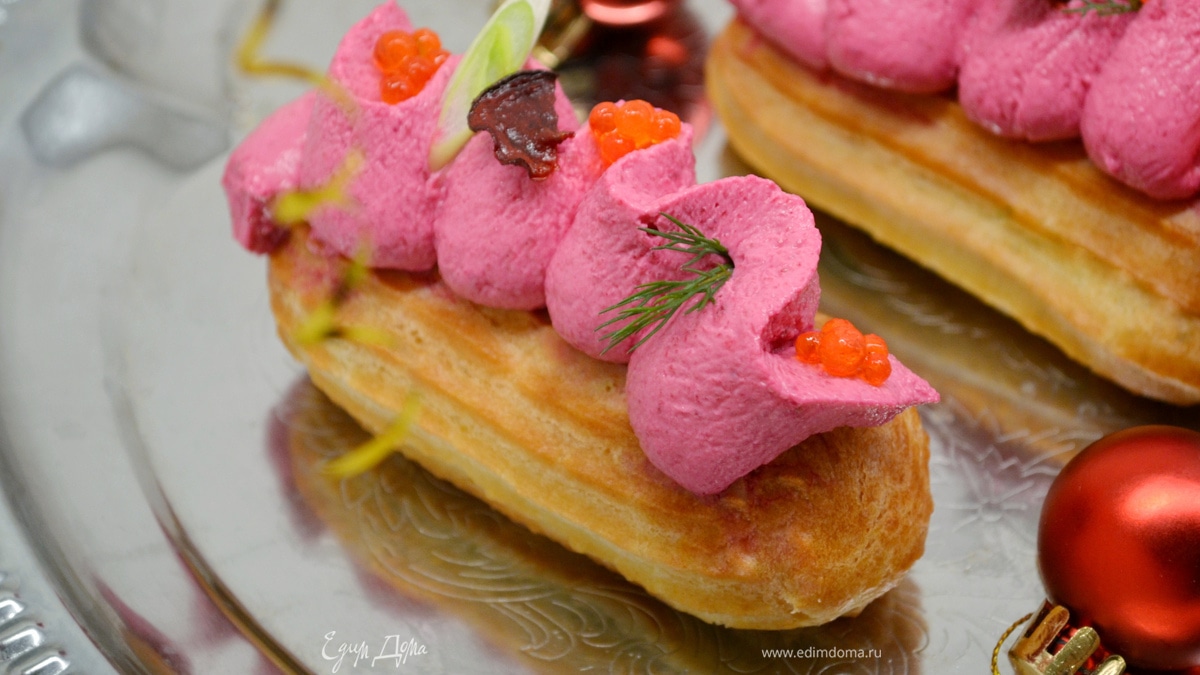 Закусочные эклеры с сельдью и свекольным кремом