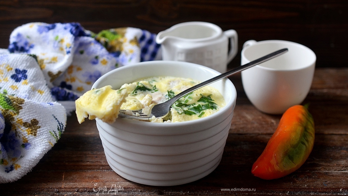 Омлет преимущественно едят на завтрак. Но такой омлет с курицей вполне можно подавать и на обед. Продукт полностью белковый, приготовлен на пару — а значит, не нанесет вреда здоровью и фигуре. Очень вкусно и просто!