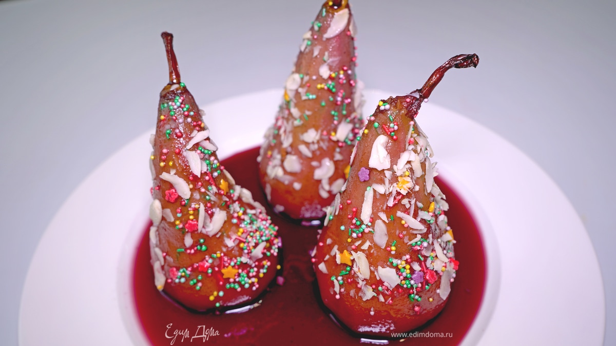 Спелые груши в красном вине