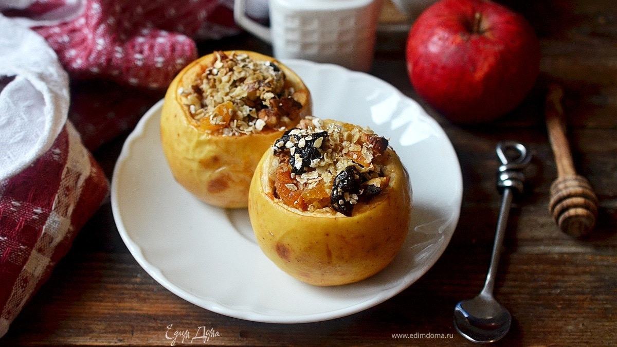 Для кого-то обед — это, прежде всего, суп. Для кого-то — салат. А вот у меня часто бывает такой обед в виде печеных яблок. Очень полезный, вкусный и ароматный. Для его приготовления не обязательно пользоваться духовкой, вполне можно приготовить такие яблоки и в микроволновой печи, поставив их туда на 7–10 минут. Для постного варианта замените сливочное масло растительным. Очень быстро и полезно!