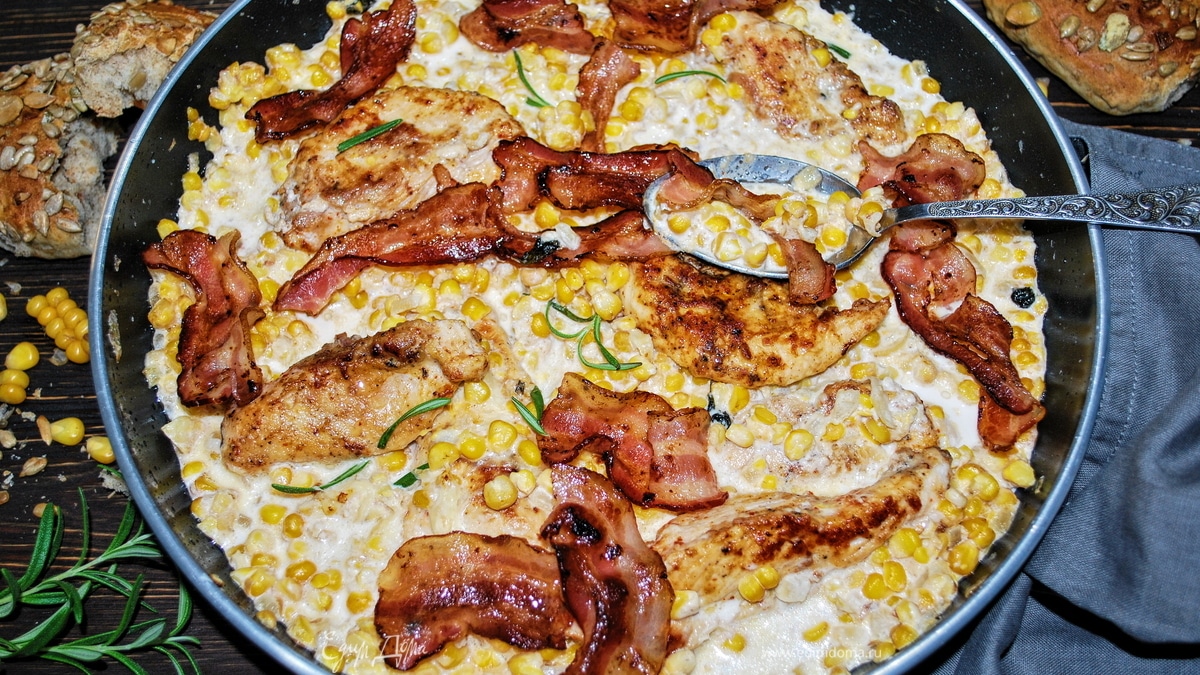 Куриное филе в сливочном соусе с беконом и кукурузой