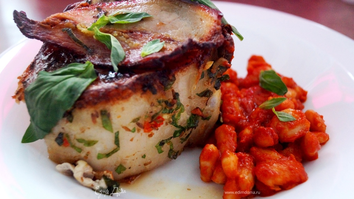 Свиная корейка, фаршированная сыром скаморца с фасолью