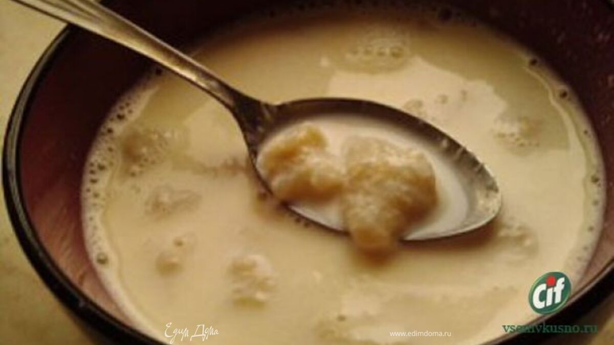 Вскипятить молоко. В небольшую миску всыпать муку, размешать ее со взбитым яйцом. Обмакнуть ложку в молоко и затем набрать немного теста. Бросать его в кипящее молоко. Проделать это очень быстро. Варить, пока все клецки не всплывут. Чуть-чуть подсолить.