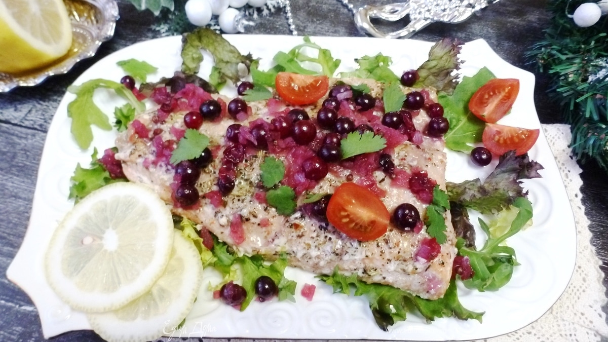 Томленая горбуша с клюквенным соусом