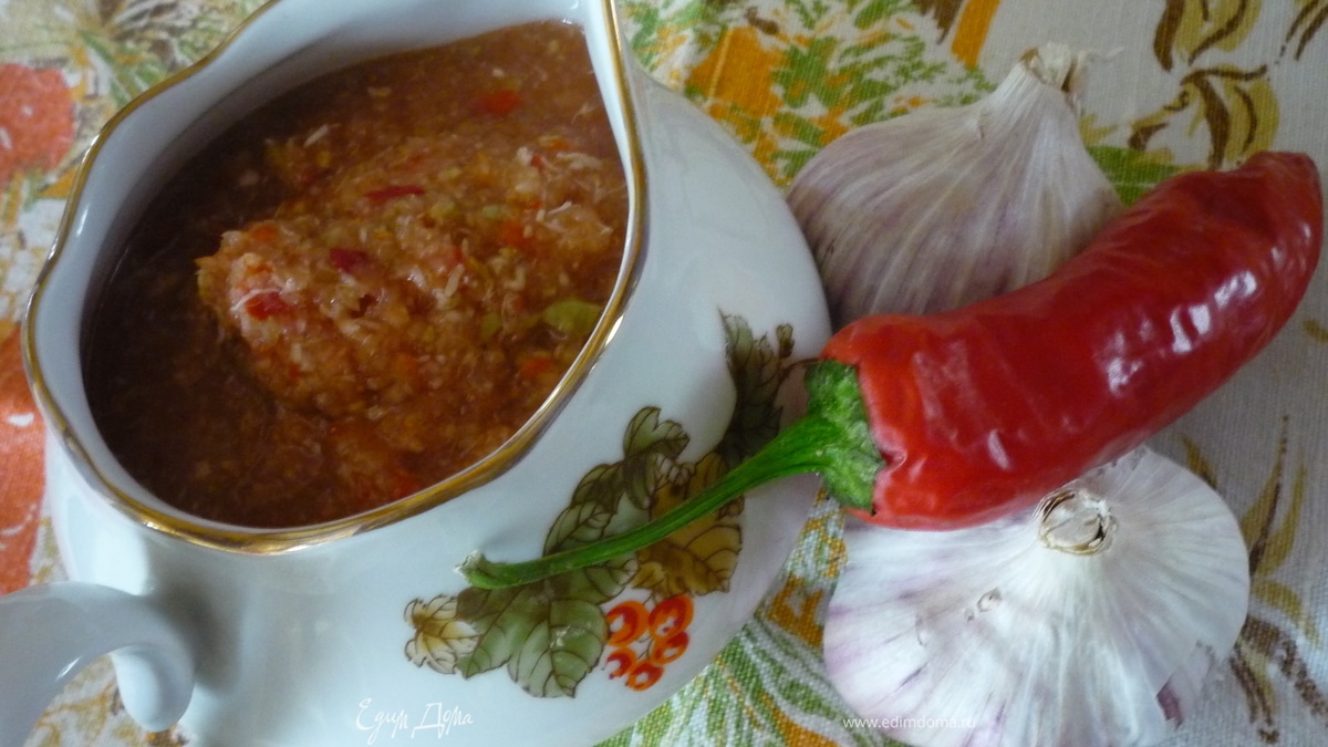 Любимая аджика в каждой семье своя. Этот рецепт с нами более 30 лет. Если хотите приготовить немного для использования в течение нескольких дней, возможны любые варианты с ингредиентами, а если хотите сделать заготовки, то сохраните состав, особенно острые специи, соль и уксус.