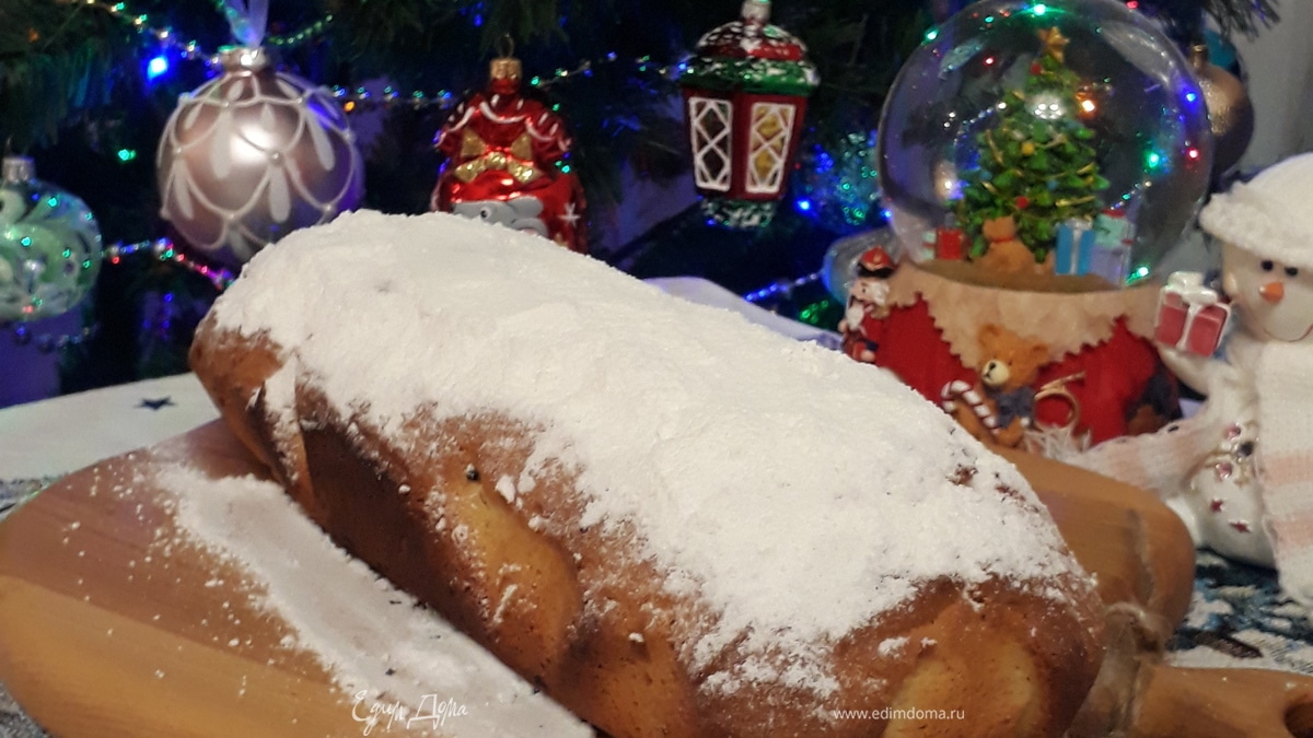Как только кекс испечется щедро покрыть его сахарной пудрой. Приятного аппетита! С наступающим новым годом!