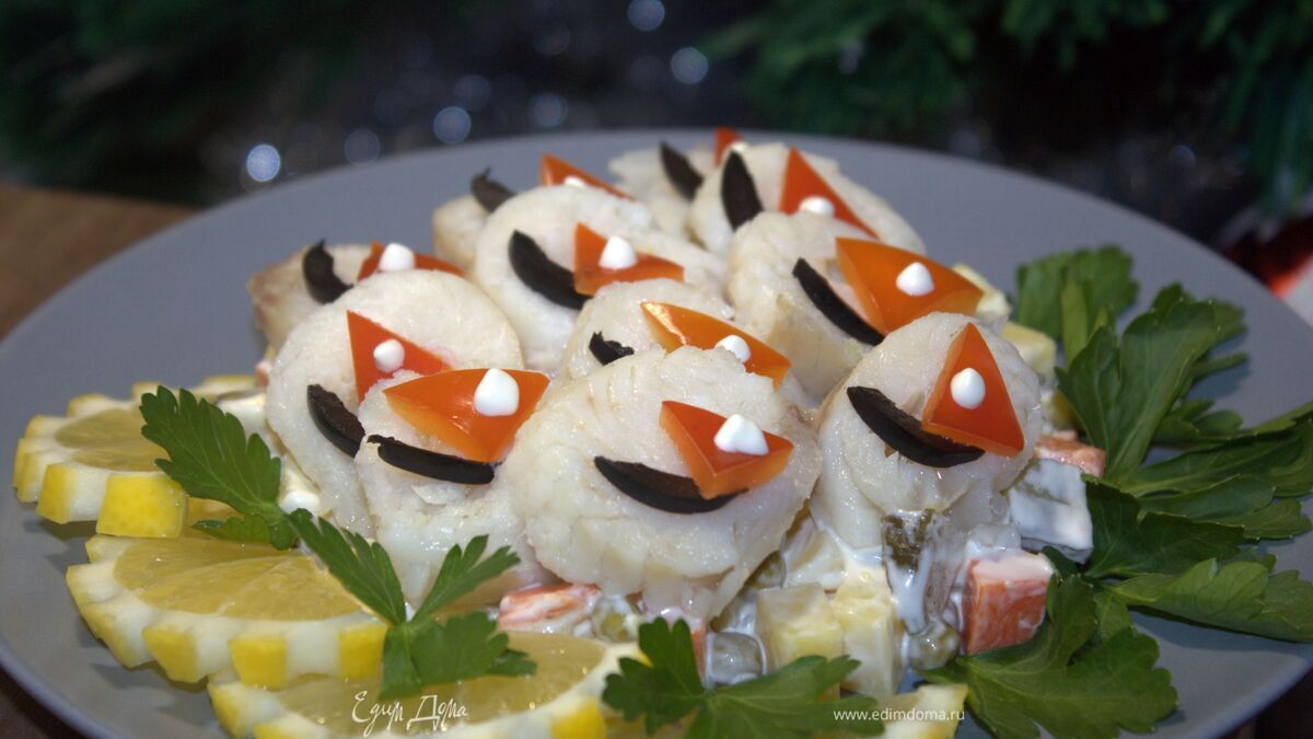 И еще украсим блюдо маслинами, лимоном и зеленью. - Шаг 9