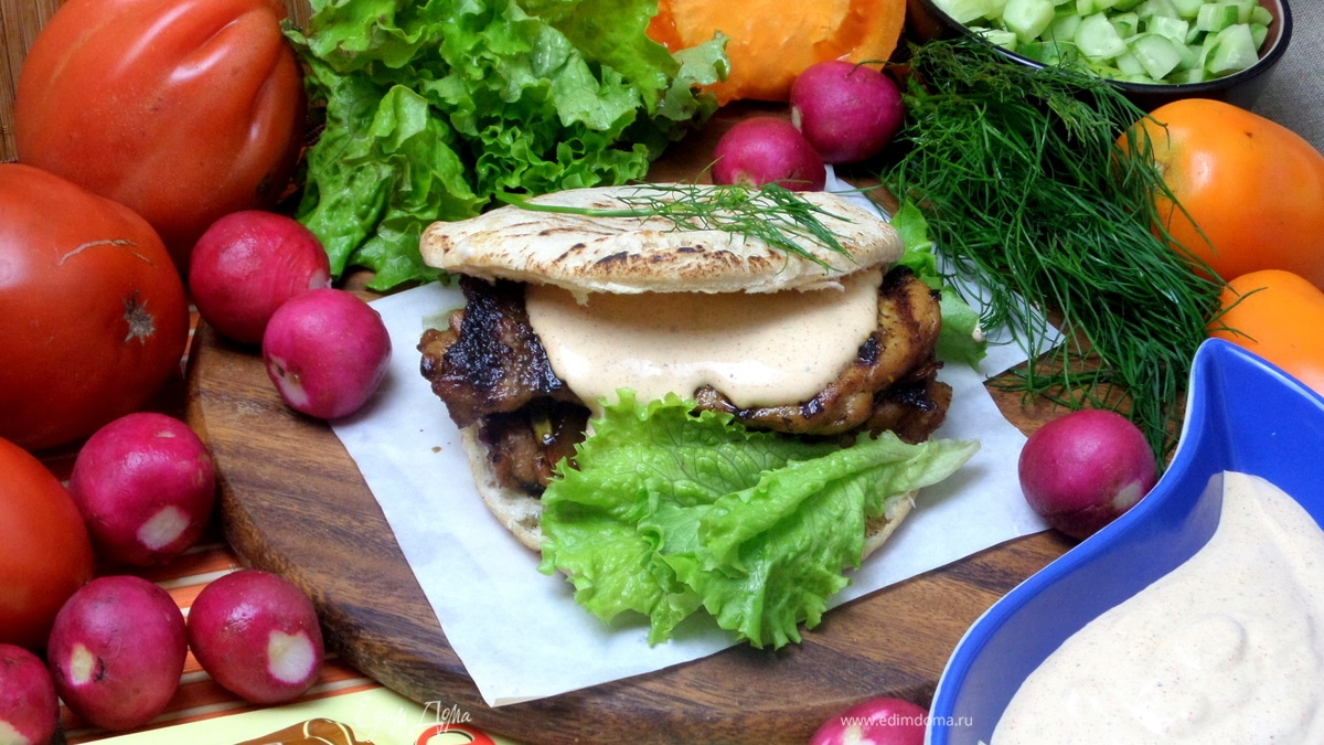 В зимние каникулы много интересных дел, и хочется быстро перекусить. Держим для этого питы в морозилке, разогреваем в духовке и подаем с аппетитной курочкой (можно приготовить на открытом воздухе). А майонезный соус добавит пикантности. Готовили с сыном по его вкусу.