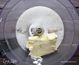 Мягкое сливочное масло взбить с сахаром до пышной массы.