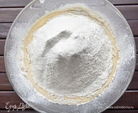 Для опары в теплом месте растворить дрожжи и сахар. Оставить миску в теплом месте до появления признаков активации дрожжей в виде пенной шапочки.