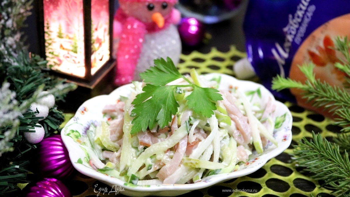 Заправить салат майонезом с тархуном и соком лимона. Желательно дать салату настояться.