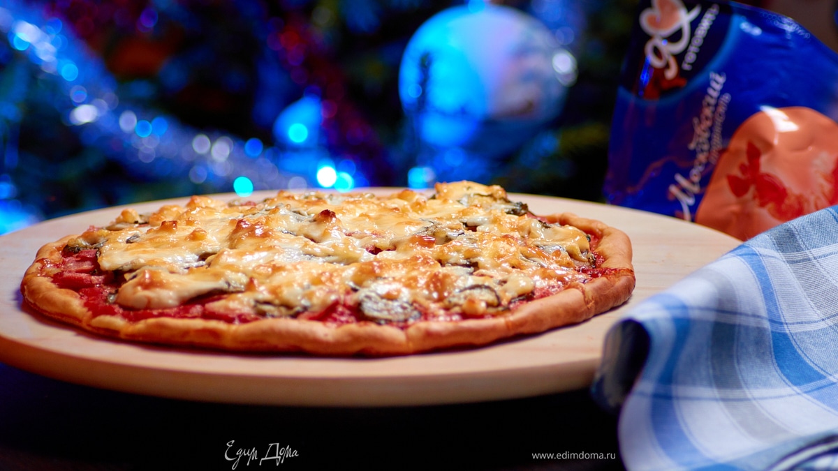 Эта пицца — тот случай, когда вы с друзьми вваливаетесь в дом после прогулки по зимнему лесу или катания с горки. Все продукты найдутся в любом холодильнике. А пачка майонеза ТМ «Московский провансаль» должна получить там постоянную прописку, ведь с ним любое блюдо просто бомбическое!