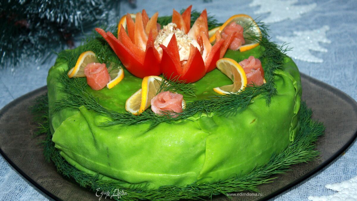 Приготовить закусочный торт поможет кухонная машина Kenwood KVC7300S. Для приготовления понадобятся насадка венчик и блендер. Насадка венчик способна быстро замесить тесто для блинов и взбить сливки для крема, а с помощью блендера можно измельчить шпинат.