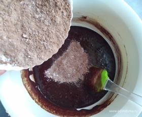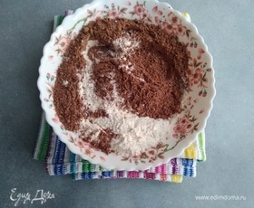 Отмерить муку и какао, добавить щепотку соли и перемешать.