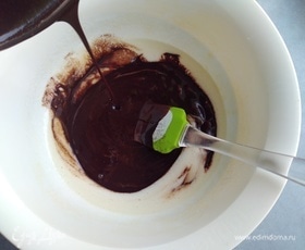 Аккуратно влить шоколадную массу к яичной, перемешать лопаткой.