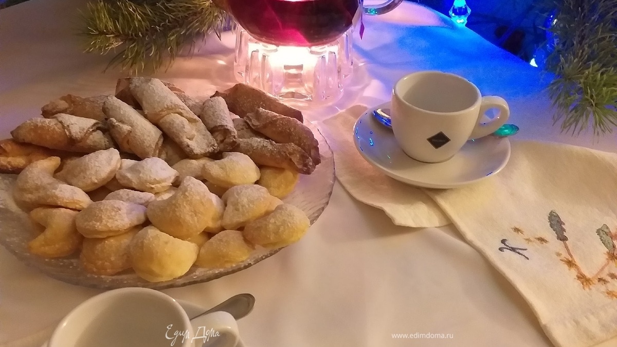 Выкладываем на блюдо, посыпаем оставшейся сахарной пудрой. Осталось узнать, кому какое предсказание выпадет в праздничную ночь.