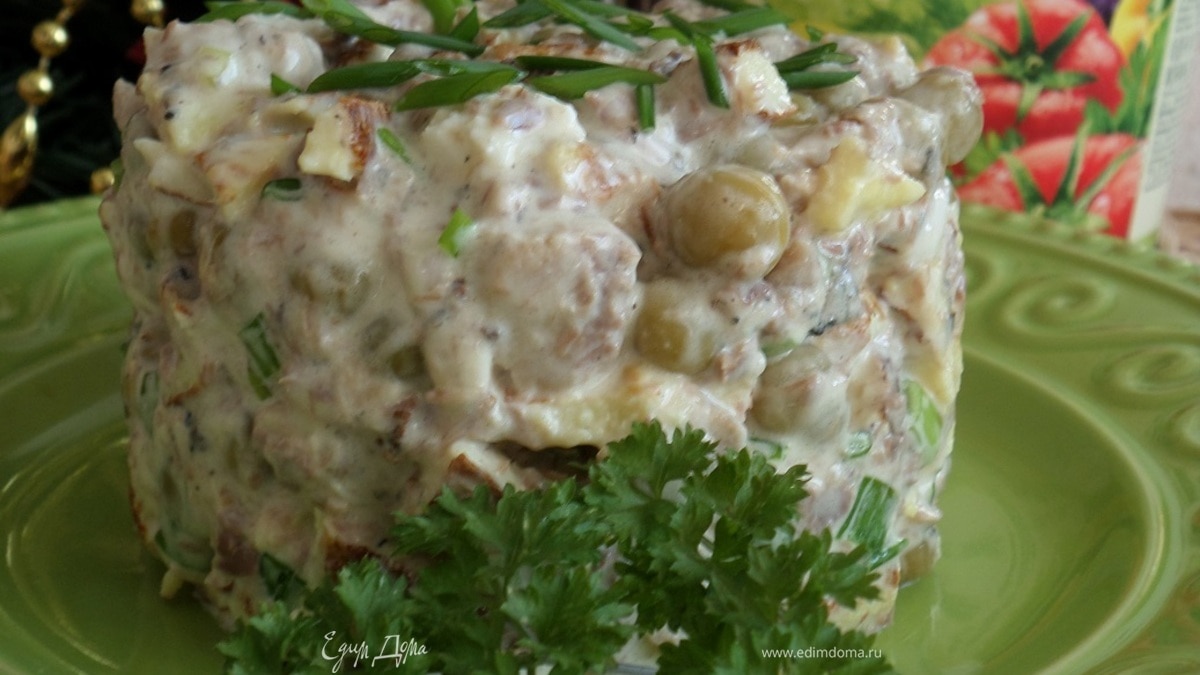 Быстрый в приготовлении салат! Уместен и на праздничном столе, и в будни. С Новым годом!