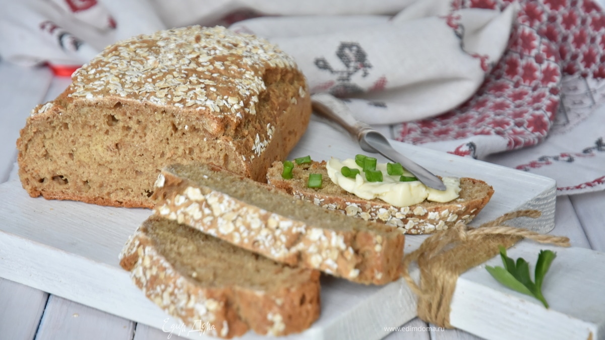 Выложить тесто в форму, смазанную растительным маслом. Сверху посыпать овсяными хлопьями. Духовку разогреть до 200°C и выпекать хлеб 40–45 минут. Дать ему немного остыть в форме, извлечь и полностью остудить на решетке.