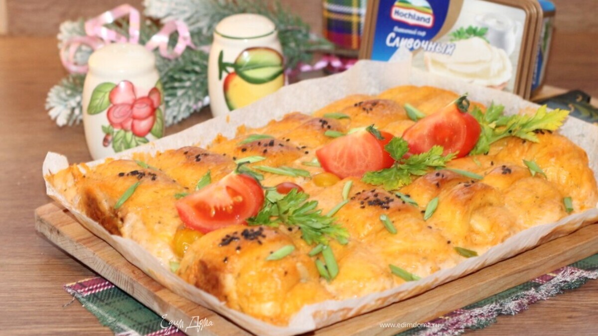 Закусочные рогалики с курицей в сырной заливке