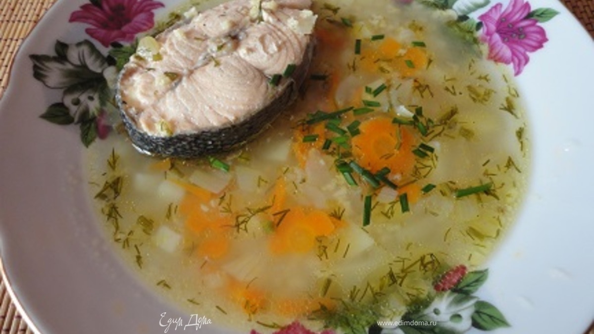 Подавать с кусочком рыбы, посыпав зеленью укропа.