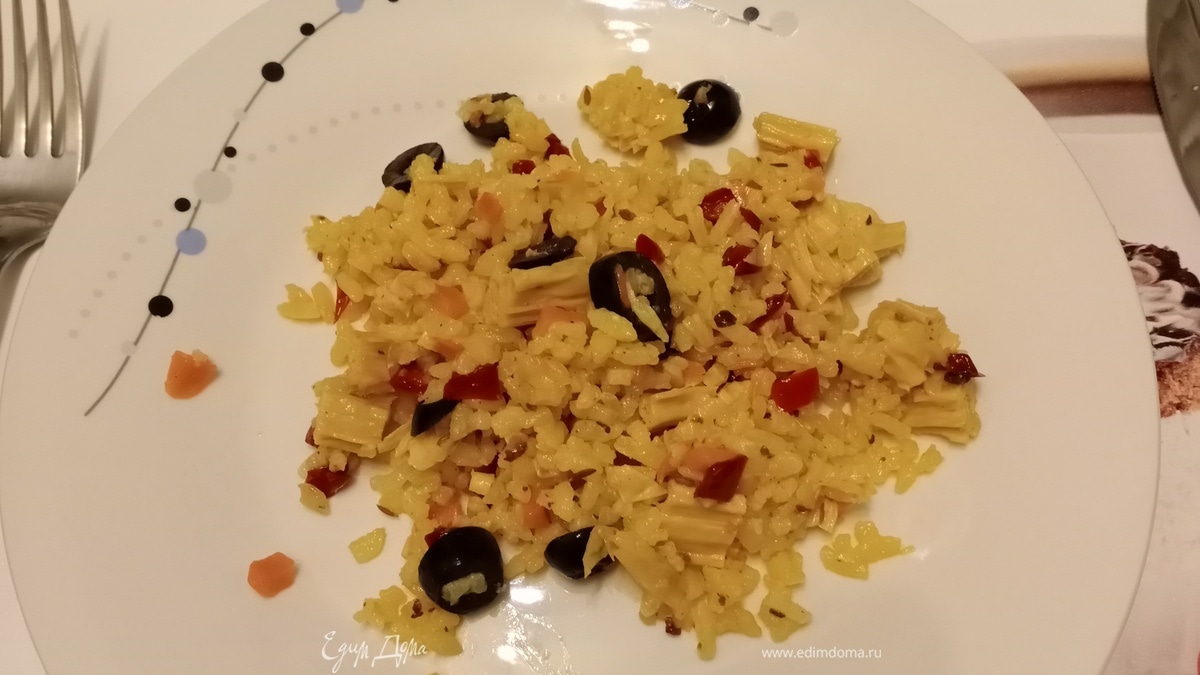 - Шаг 4И последняя закладка — вареный рис. Все хорошо перемешиваем и пробуем на соль. Кому ее не хватает — добавьте по вкусу. Оставляем блюдо на медленном огне до полного прогревания всех ингредиентов, периодически перемешивая. Подавать можно как отдельное блюдо и как гарнир к животным белкам) Приятного аппетита!