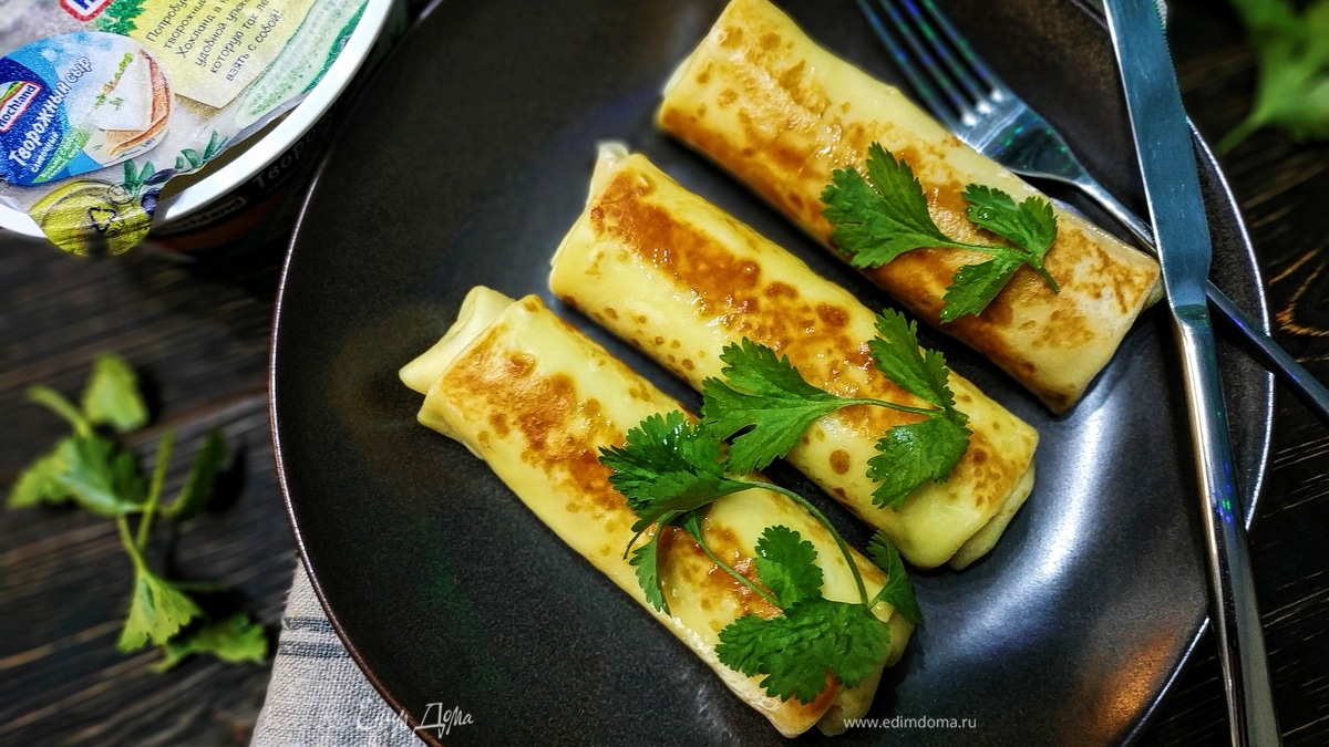 Горячие блинчики сразу подавайте к столу. Приятного аппетита.