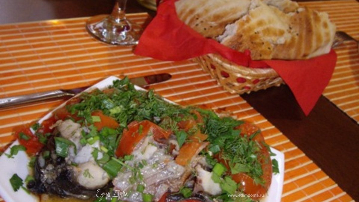 Карп тушенный с помидорами
