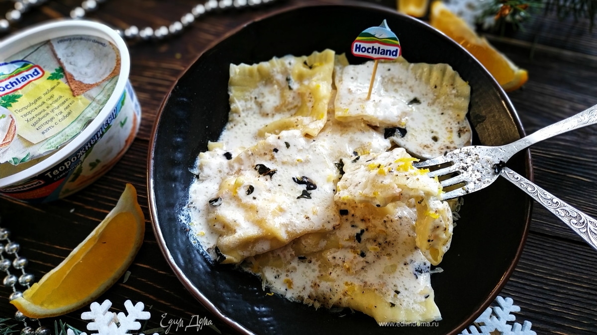 Нет более приятного занятия, чем есть пасту, и более приятного занятия, чем ее готовить. Горячие свежеприготовленные равиоли с креветками и творожным сыром Hochland, приправленные свежемолотым черным перцем и цедрой лимона, в ароматном соусе из белого вина. Очень вкусное и легкое блюдо, которое можно подать на праздничные дни.