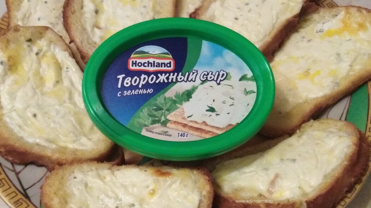 На каждый кусочек батона выложить начинку из творожного сыра.