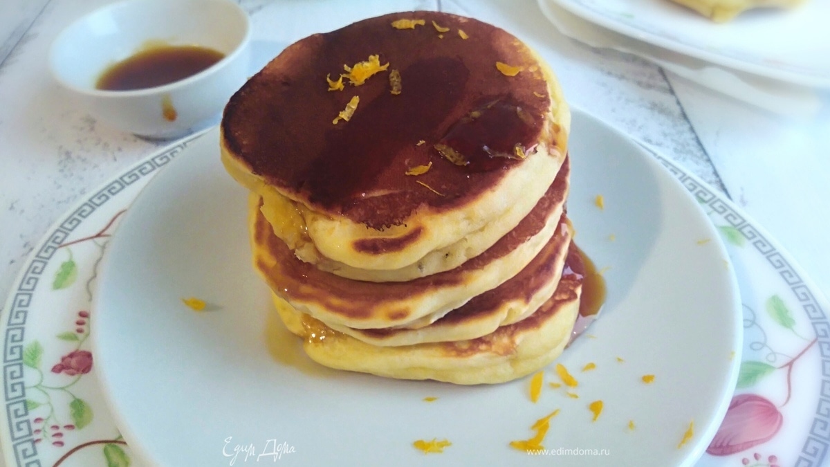 Подавать, полив вашим любимым сиропом или вареньем. Я брала кленовый сироп. Панкейки любят соусы и сиропы, так что не жалейте. - Шаг 7