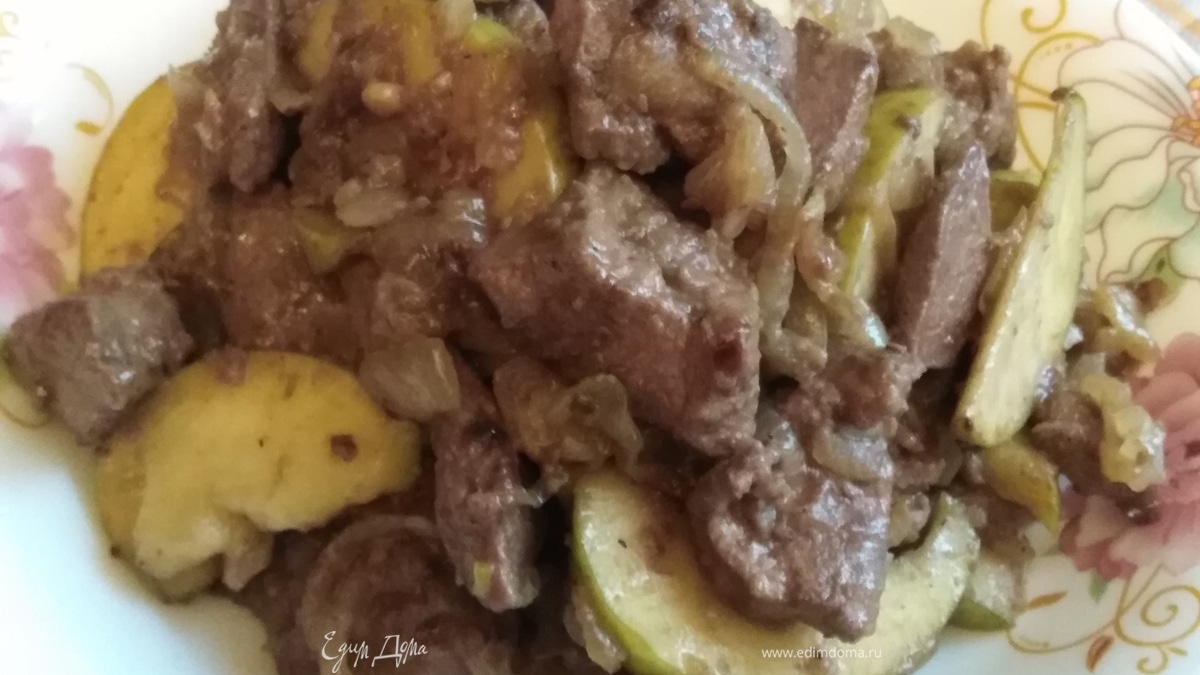 Яблоко нарезать дольками толщиной 0,5 см. Добавить к печени. - Шаг 6