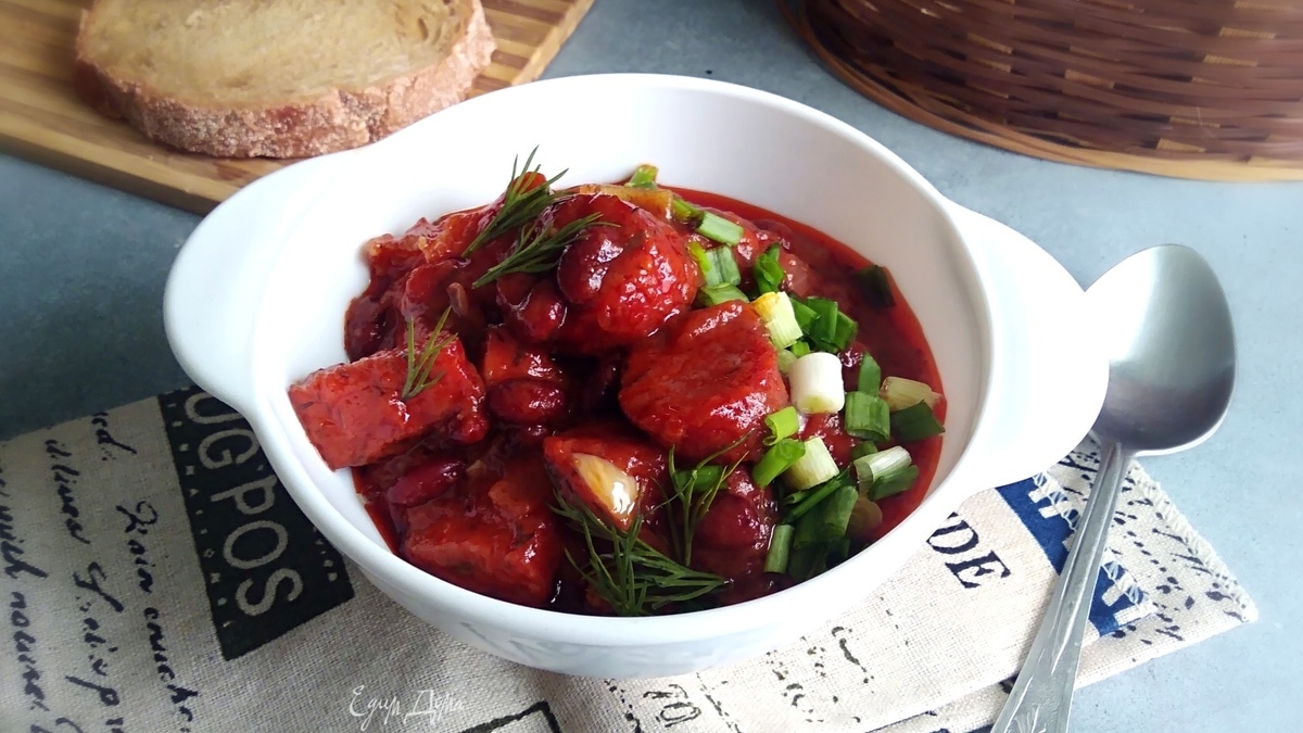 Фасоль с колбасками по-польски
