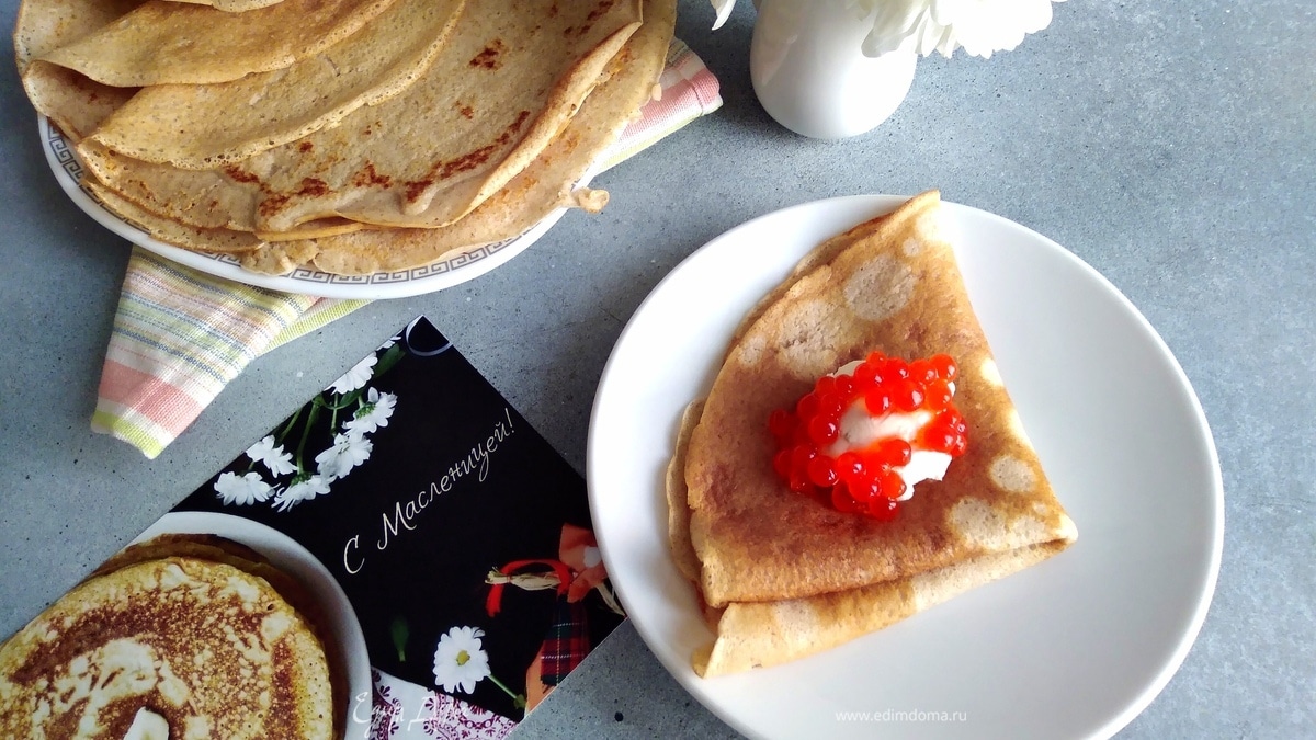 Масленица пришла! Время печь вкусные блины и угощать ими! Эти несладкие низкокалорийные блинчики понесу сегодня родителям. Но пробу, конечно, сняла!