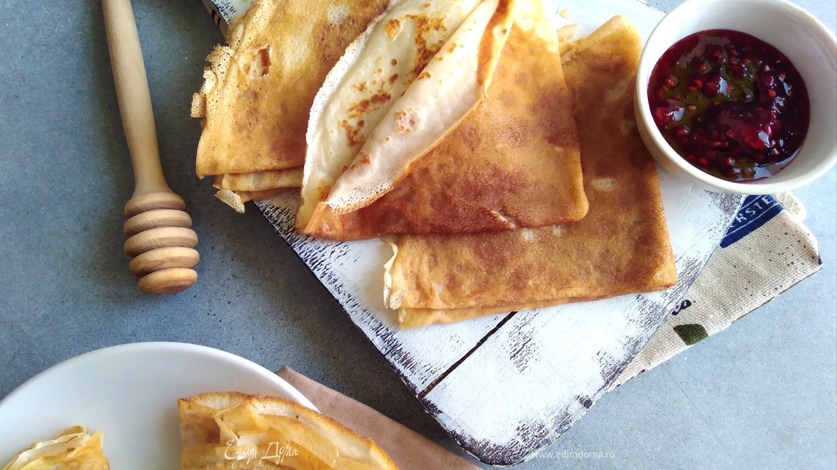Вы какие блины любите — тонкие или поплотнее? Если тоненькие, то этот рецепт для вас! Он из книги Мишеля Ру «Яйца». Единственное мое дополнение — это растительное масло в тесте, остальное все по книге. Если соберетесь печь эти блинчики, следуйте рекомендациям в моем рецепте.