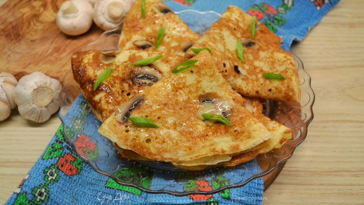 Дрожжевые блины с грибным припеком
