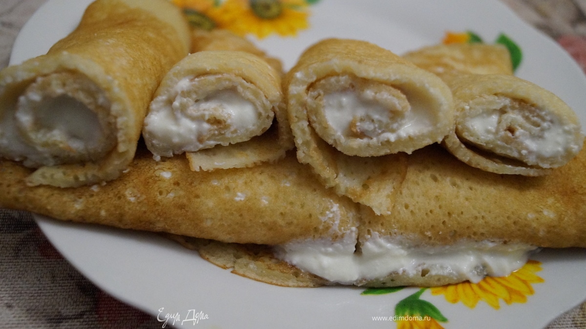 Смазанные кремом блины сверните в трубочки, уложите на подходящее блюдо. - Шаг 9