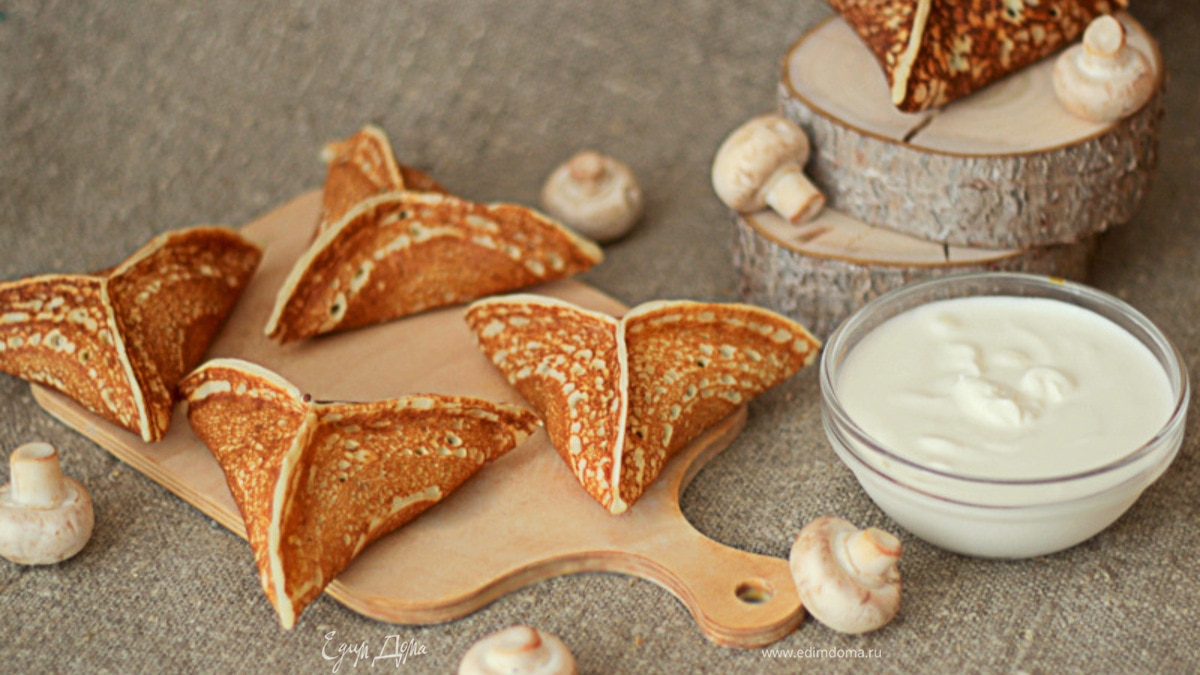 Блины-треугольники с грибами и сыром
