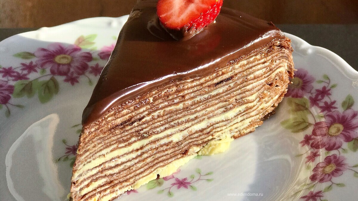 Шоколадный блинный торт с апельсиновым крем-чизом