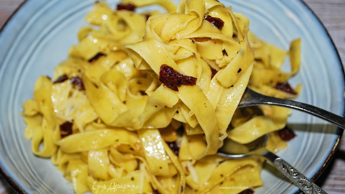 Мы очень любим пасту и готовим ее часто. Паста тальятелле с анчоусами и вялеными томатами очень вкусная. А готовить ее быстро!