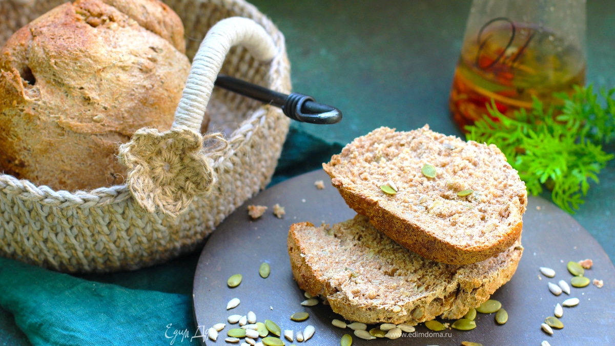 Сегодня у меня на столе полезных хлеб — цельнозерновой из смолотого только что зерна в мельничных жерновах с добавлением разных семян, выпеченный на полном цикле хлебопечи. Также можно добавить измельченные чернослив или курагу.
