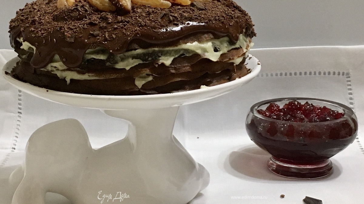 Шоколадные тоненькие блинчики, пропитанные кремом, и тонкий