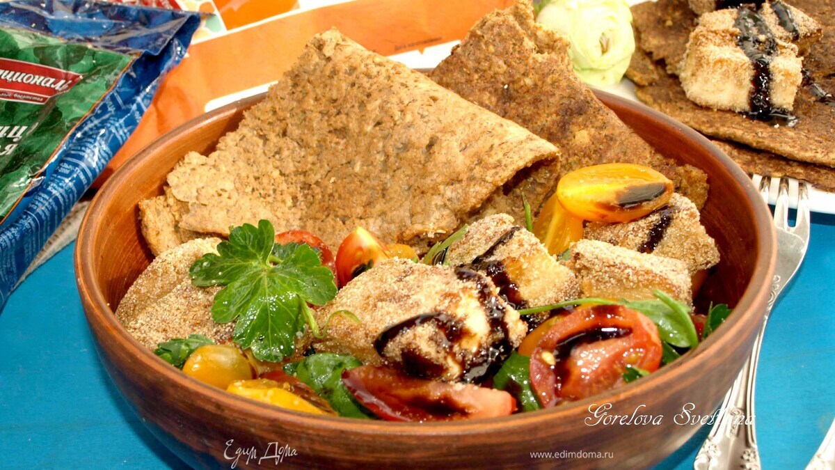 Лепешки из чечевицы с салатом из жареного тофу и помидоров черри