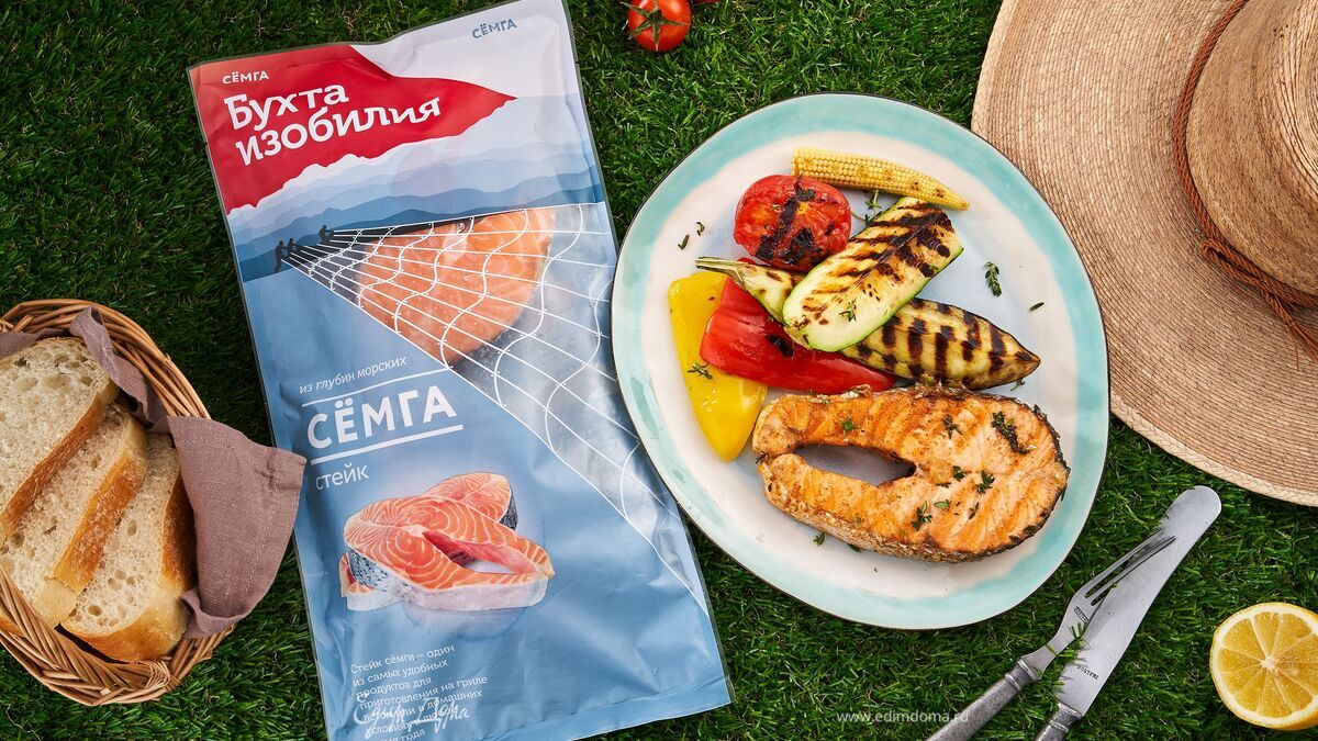 Для полноценного ужина на природе дополните семгу овощами, запеченными на гриле.