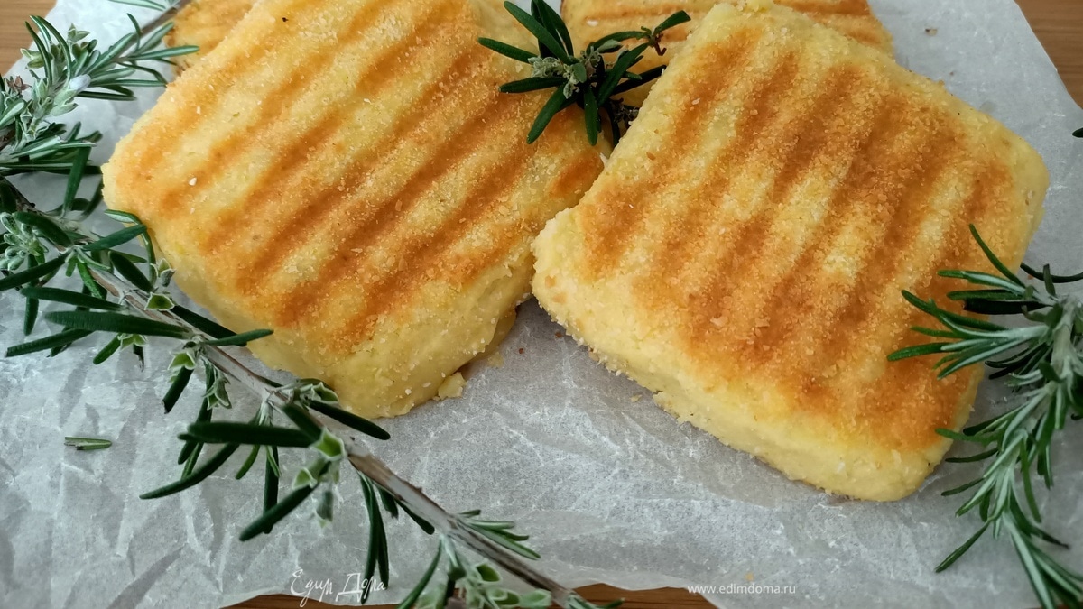 Обжарить на сковороде-гриль по 5–6 минут с каждой стороны, до золотистого цвета. Украсить розмарином. Приятного аппетита!