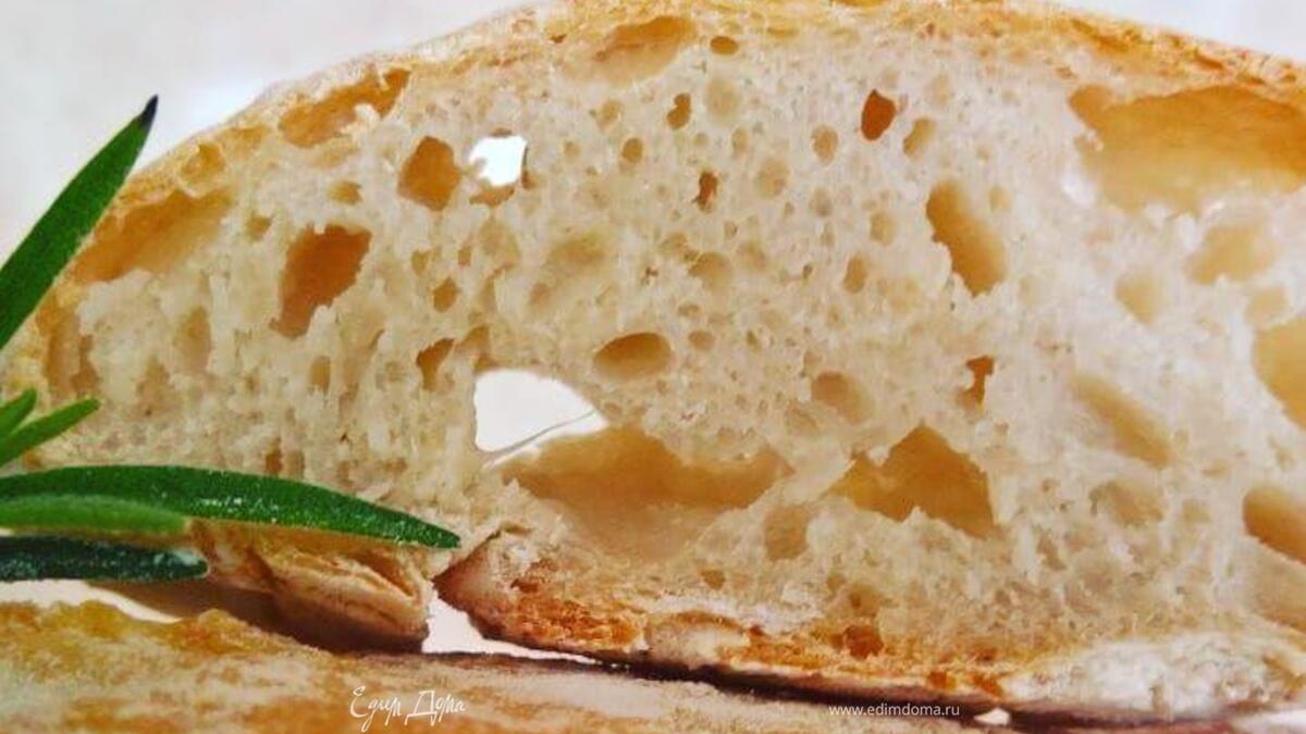 Чиабатта — это итальянский хлеб с хрустящей корочкой, воздушной мякотью и характерными для сыра большими дырками.