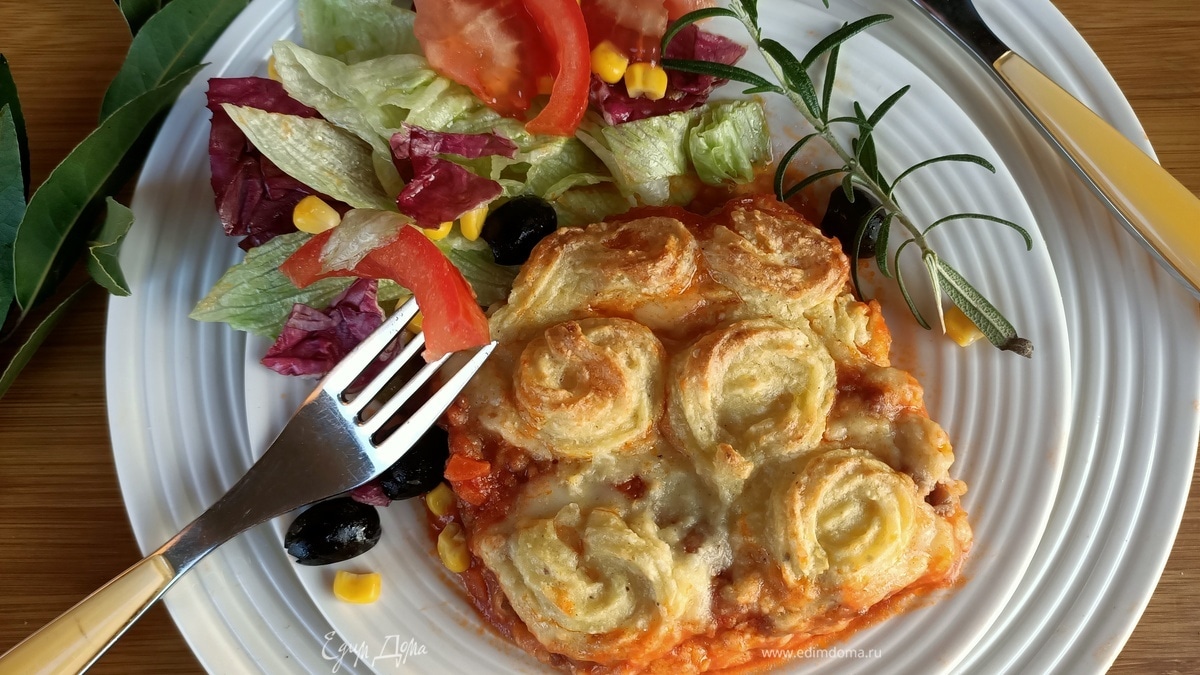 На картофельную основу выложить мясное рагу. - Шаг 11