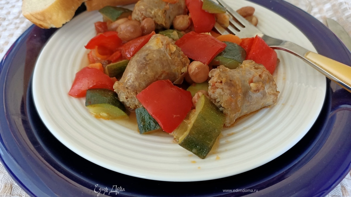 Овощное рагу с домашними колбасками